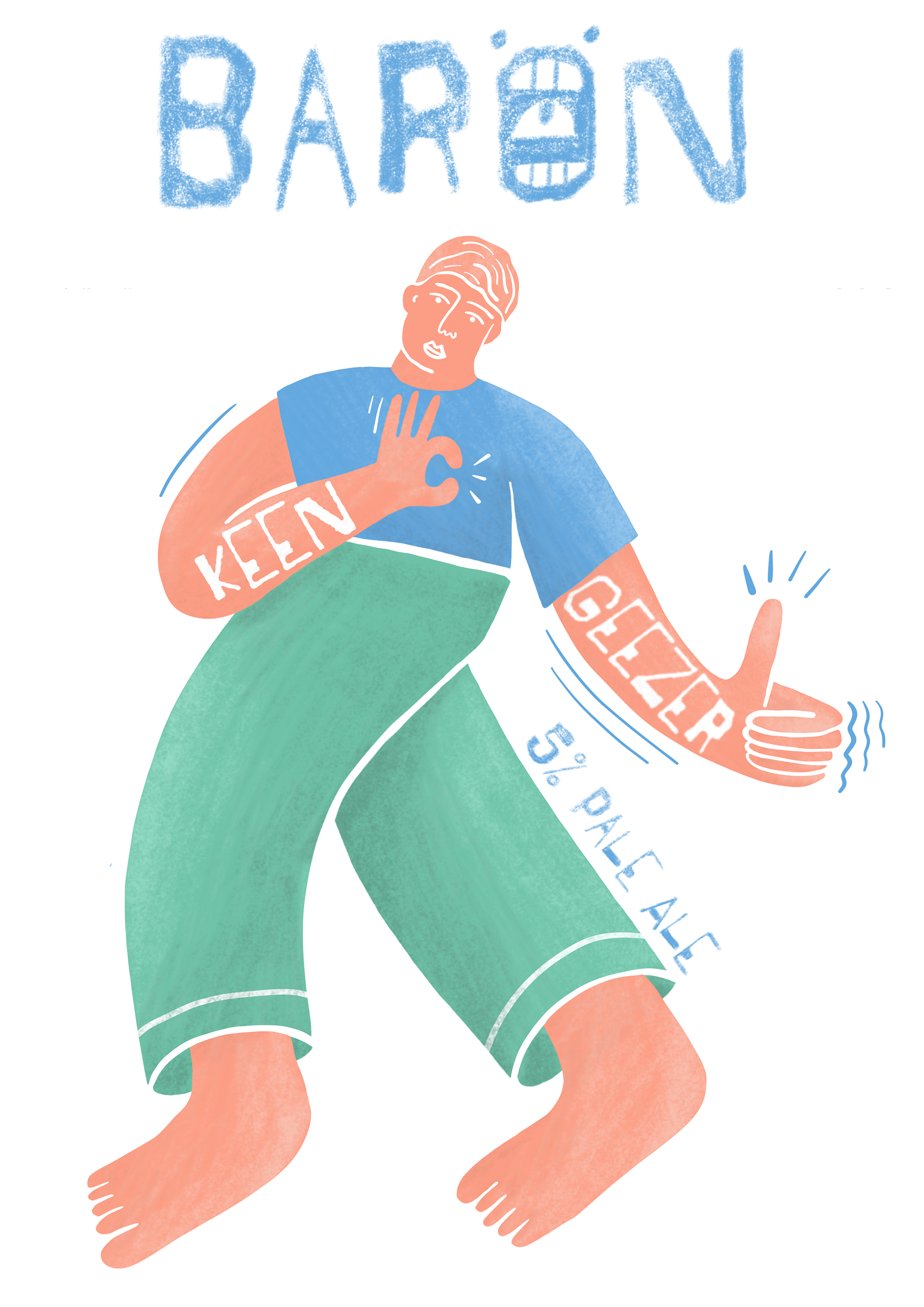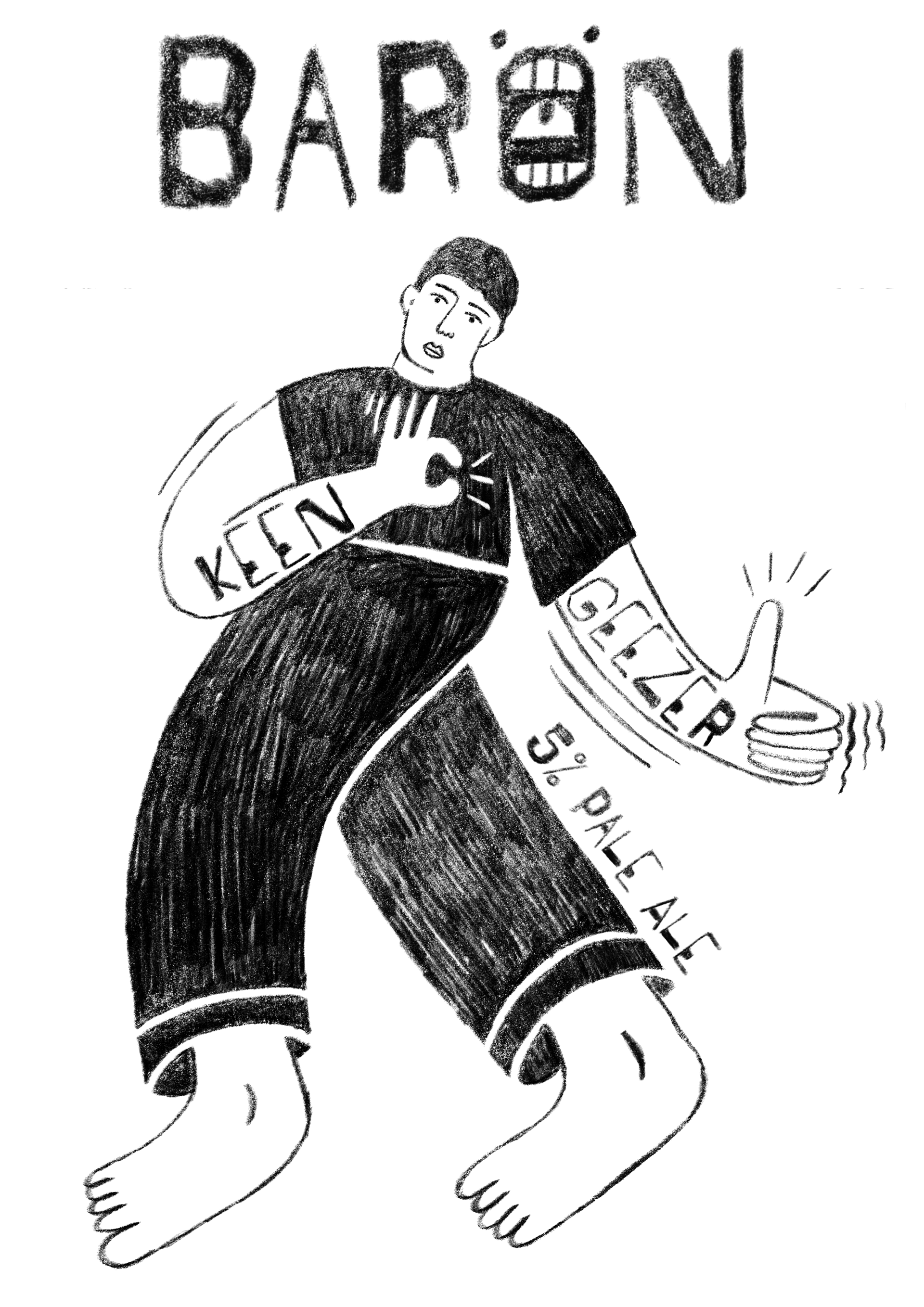 The brief: Design a beer can label for Baron. Must include the name of the beer, % and beer type. Use the company colour scheme. Use or adapt the company logo. Everything else is fair game. To be printed onto beer batches September-December 22.