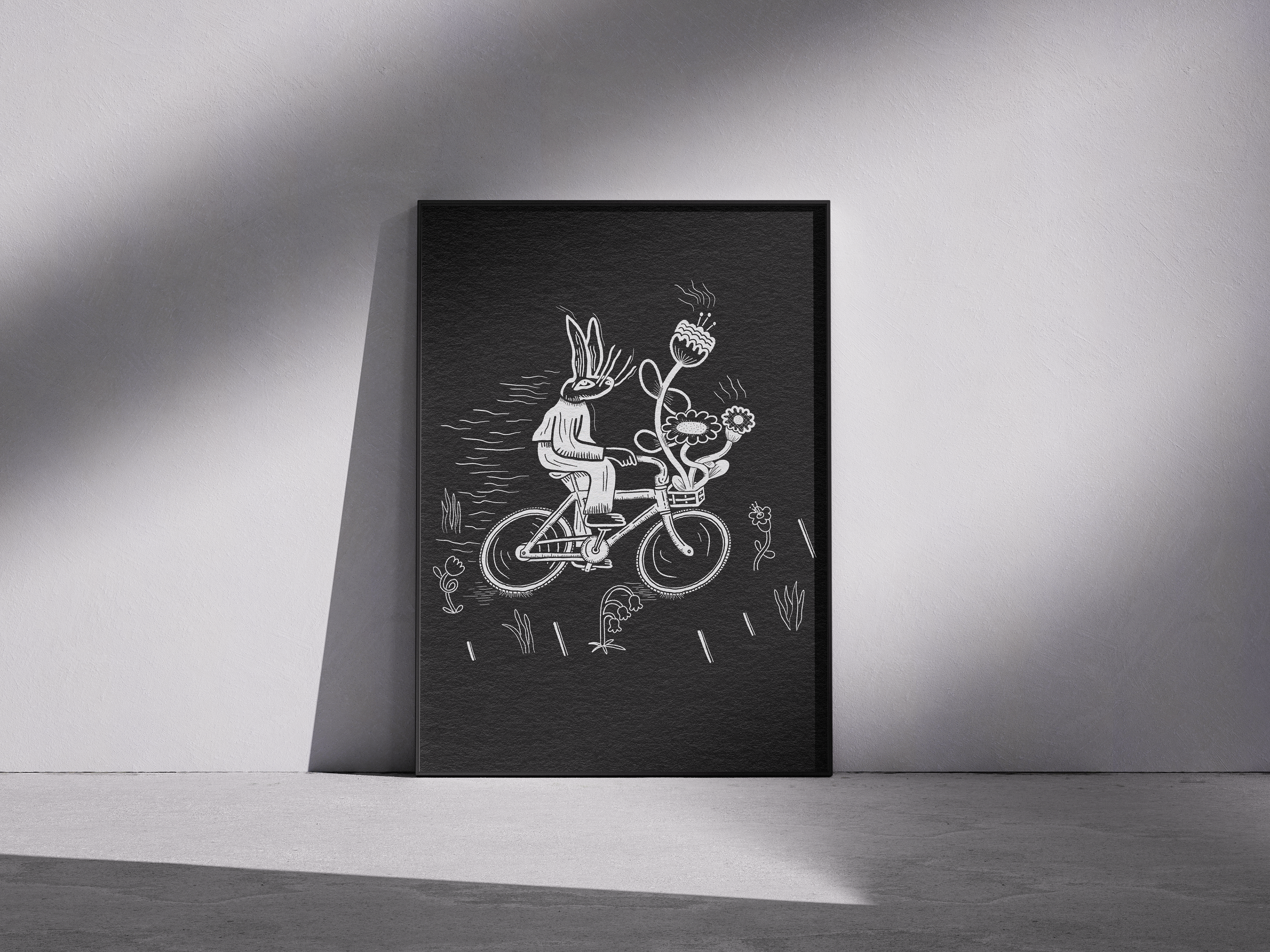 the brief: design a new limited edition T-shirt for us to be launched in spring 24. cAN IT INCLUDE A HARE CYCLING.