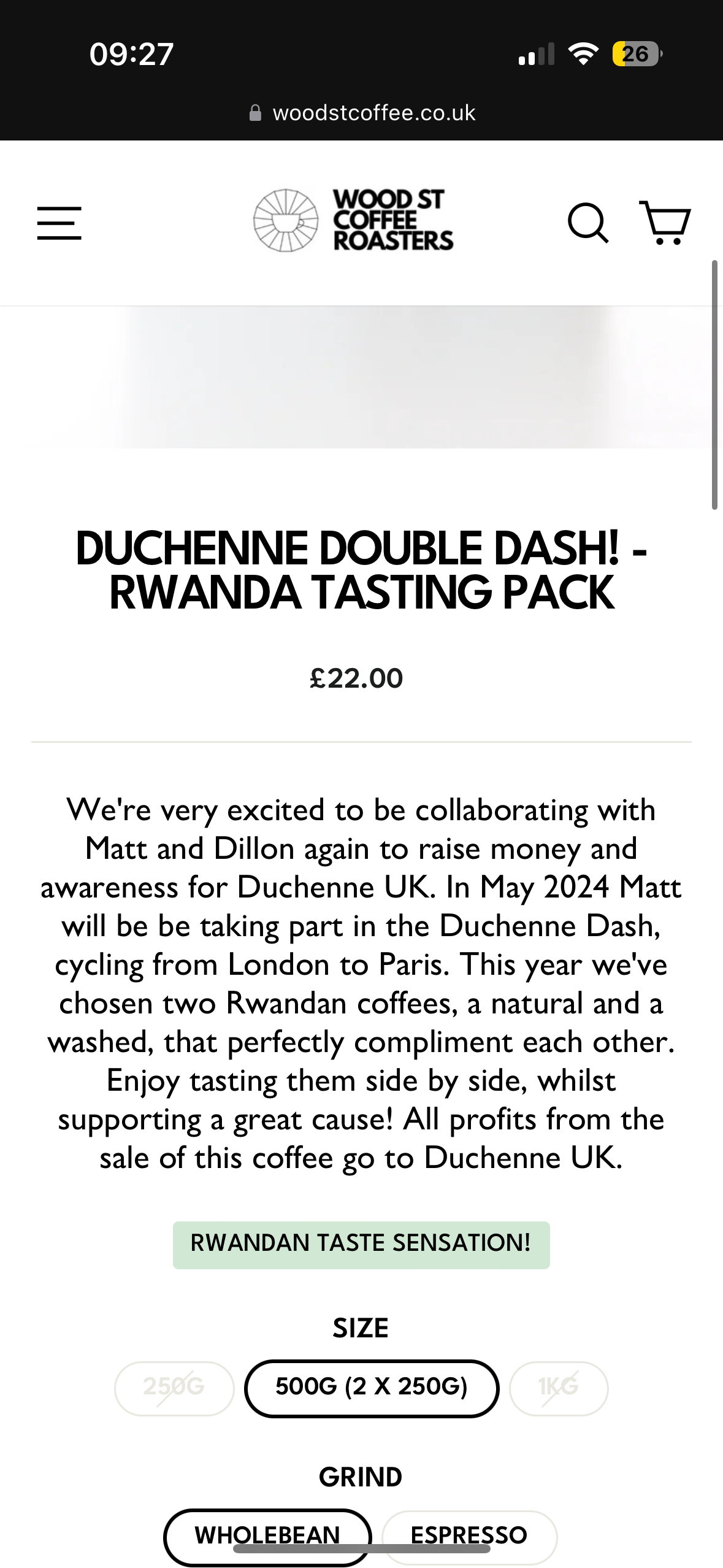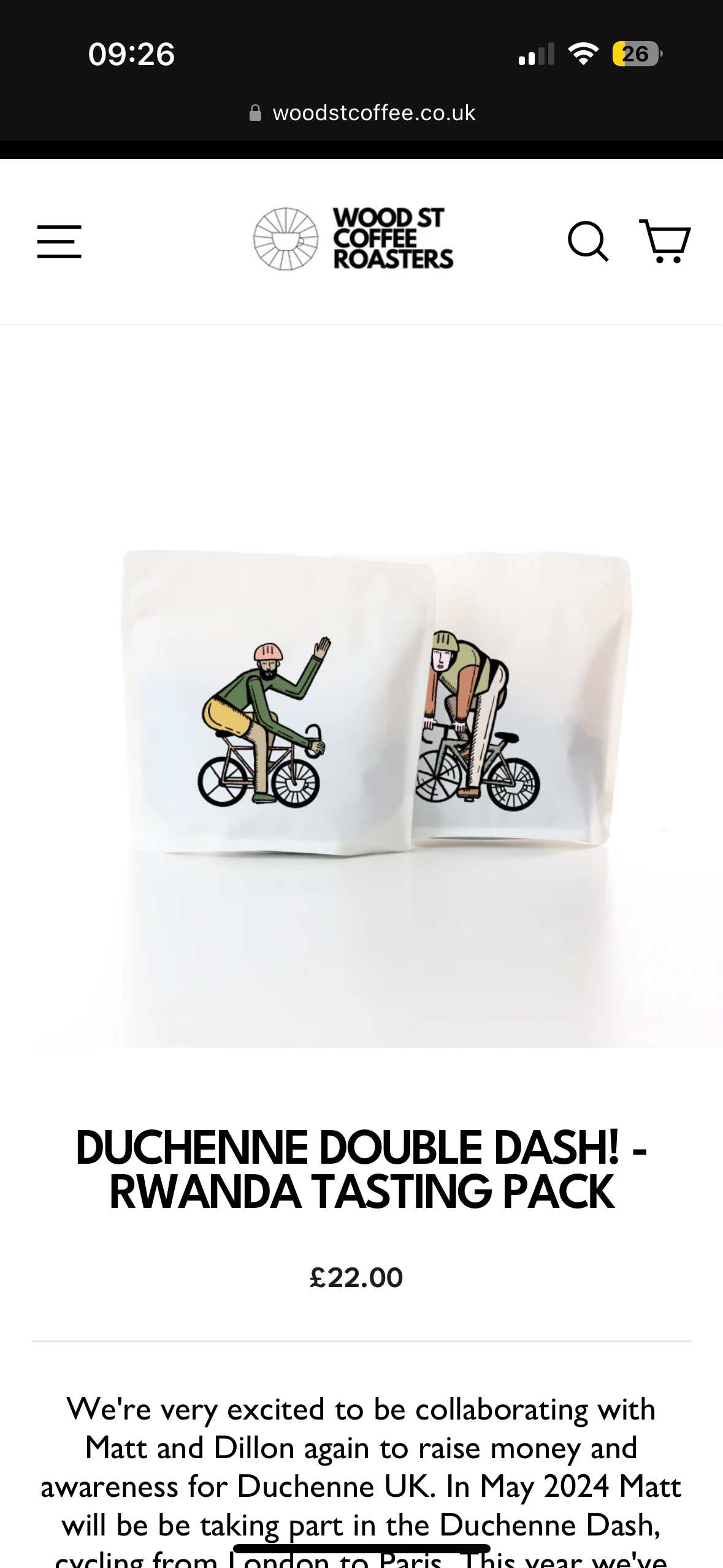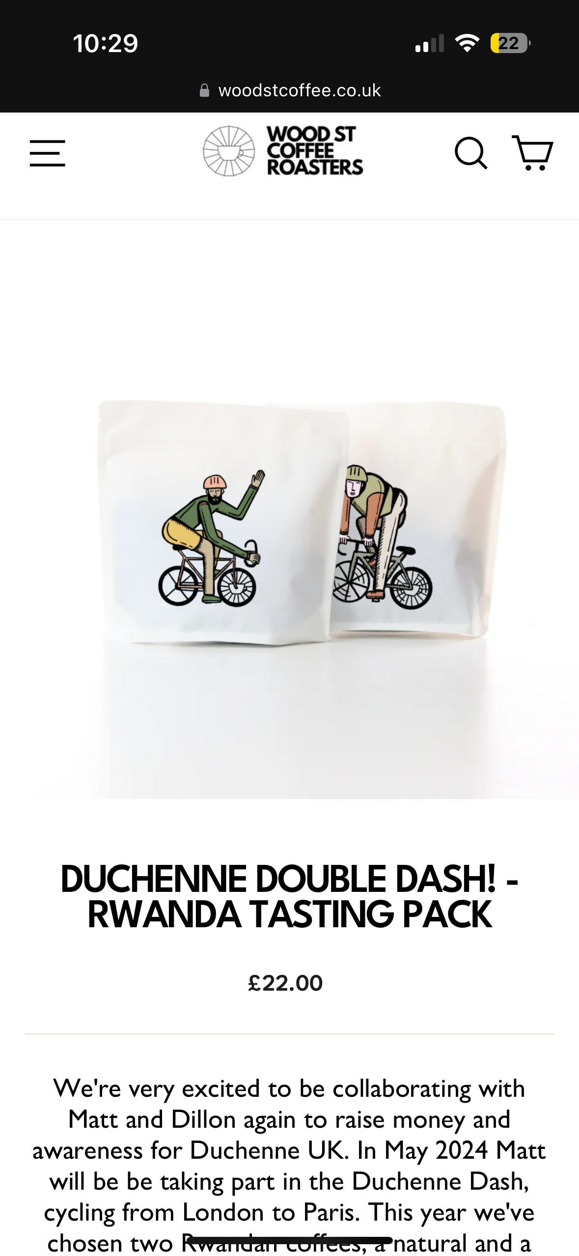 In May 2024 Matt will be be taking part in the Duchenne Dash, cycling from London to Paris. This year we've chosen two Rwandan coffees, a natural and a washed, that perfectly compliment each other. All profits from the sale of this coffee go to Duchenne UK.
